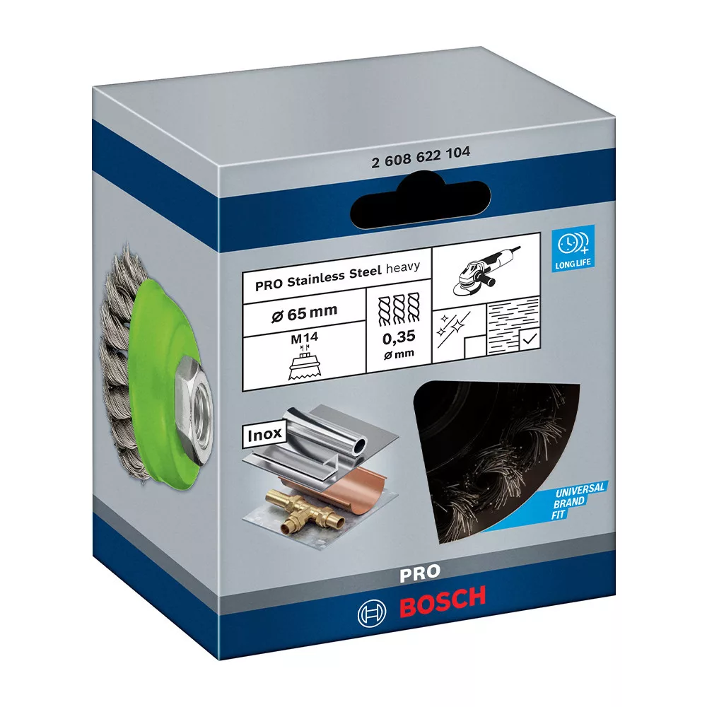 Bosch PRO Stainless Steel heavy fonott fazékkefe, 65x0,35 mm, M14 menetes, fémhez, inoxhoz