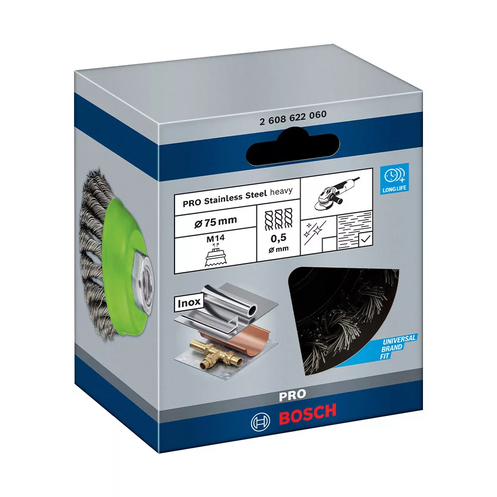 A PRO Stainless Steel heavy csészekefe tartós kiegészítője minden olyan fémműhelynek, ahol hegesztési varratot, erős rozsdát, régi festéket, lakkot és alvázvédőt kell eltávolítani acél- és színesfém-felületekről. A csészekefe kiváló minőségű fonott huzallal készül, hogy nagy igénybevételű tisztítási feladatokhoz használhasd – újra és újra. A vastagabb huzalú csészekeféket a gyors, durva csiszoláshoz, a vékonyabb huzalúakat pedig a simább felület eléréséhez használd. Az alábbi anyag(ok)hoz ajánlott: nemvasfémek, acél, rozsdamentes acél