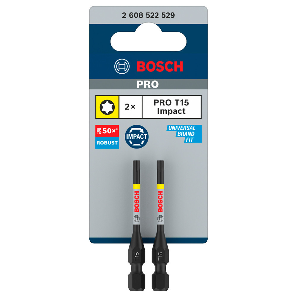 Bosch PRO Torx ütvecsavarozó bitfej, T15, 55 mm, 2 db