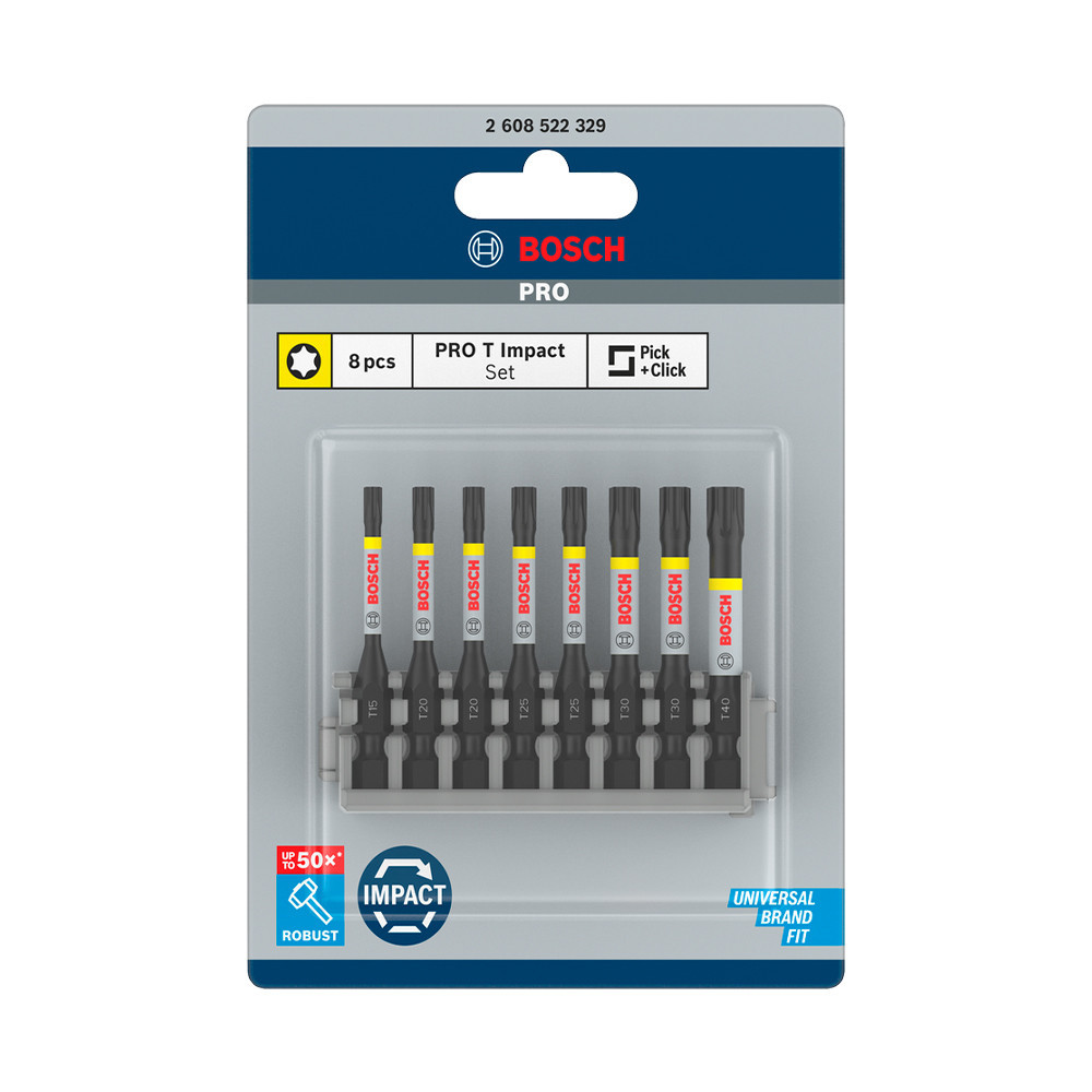 Bosch PRO Torx ütvecsavarozó bitkészlet, T15-T40, 55 mm, 8 db, Pick and Click
