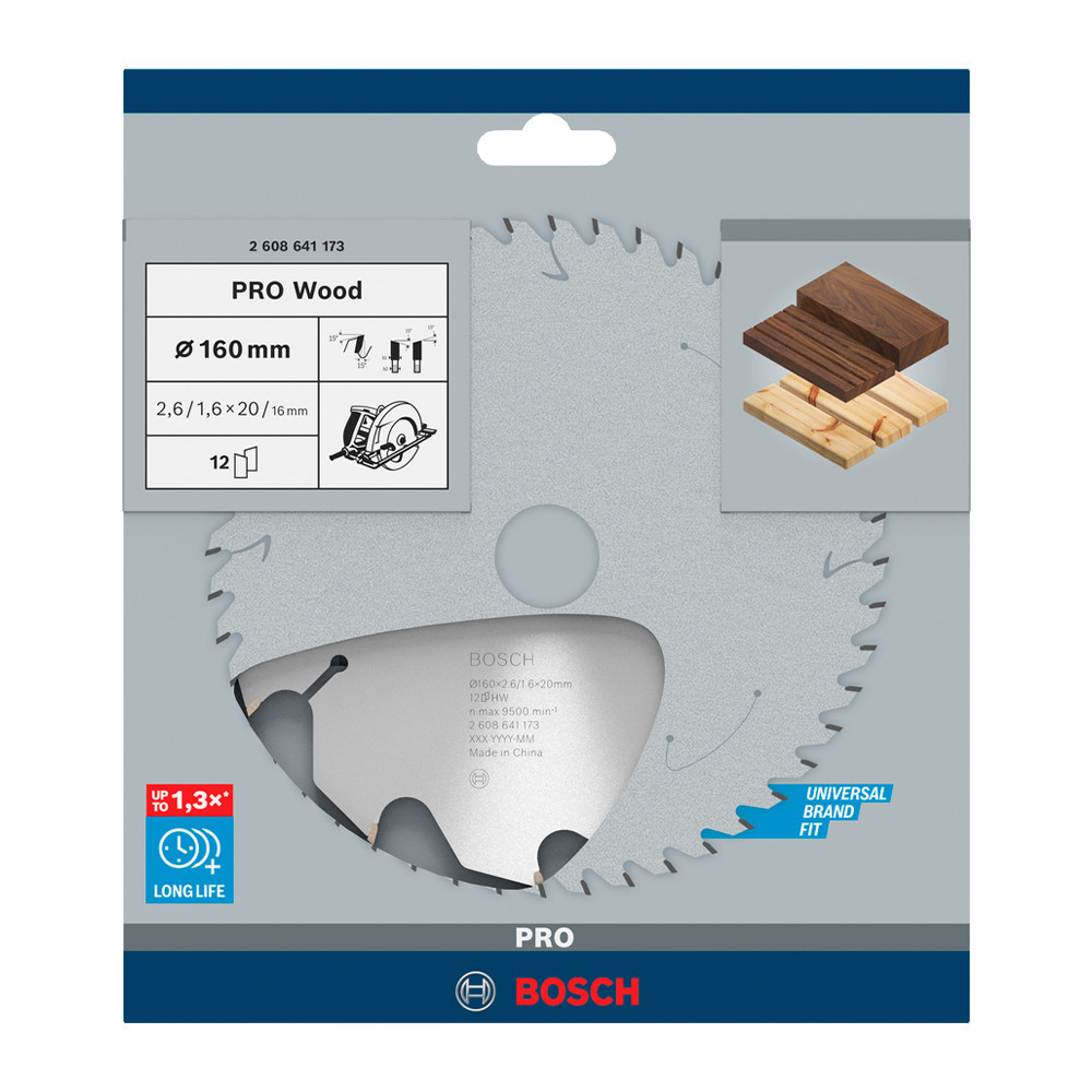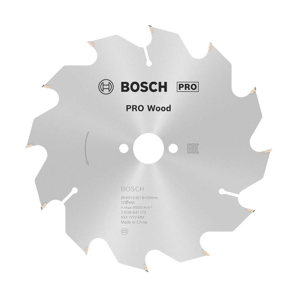 Bosch PRO Wood körfűrészlap, 160x2,6x20 mm 12 fog, kemény fa, rétegelt lemez, forgácslap