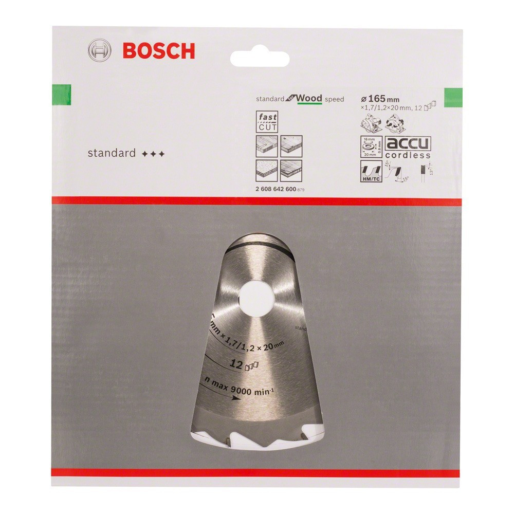 Bosch PRO Wood körfűrészlap, 165x1,7x20 mm 12 fog, kemény fa, rétegelt lemez, forgácslap