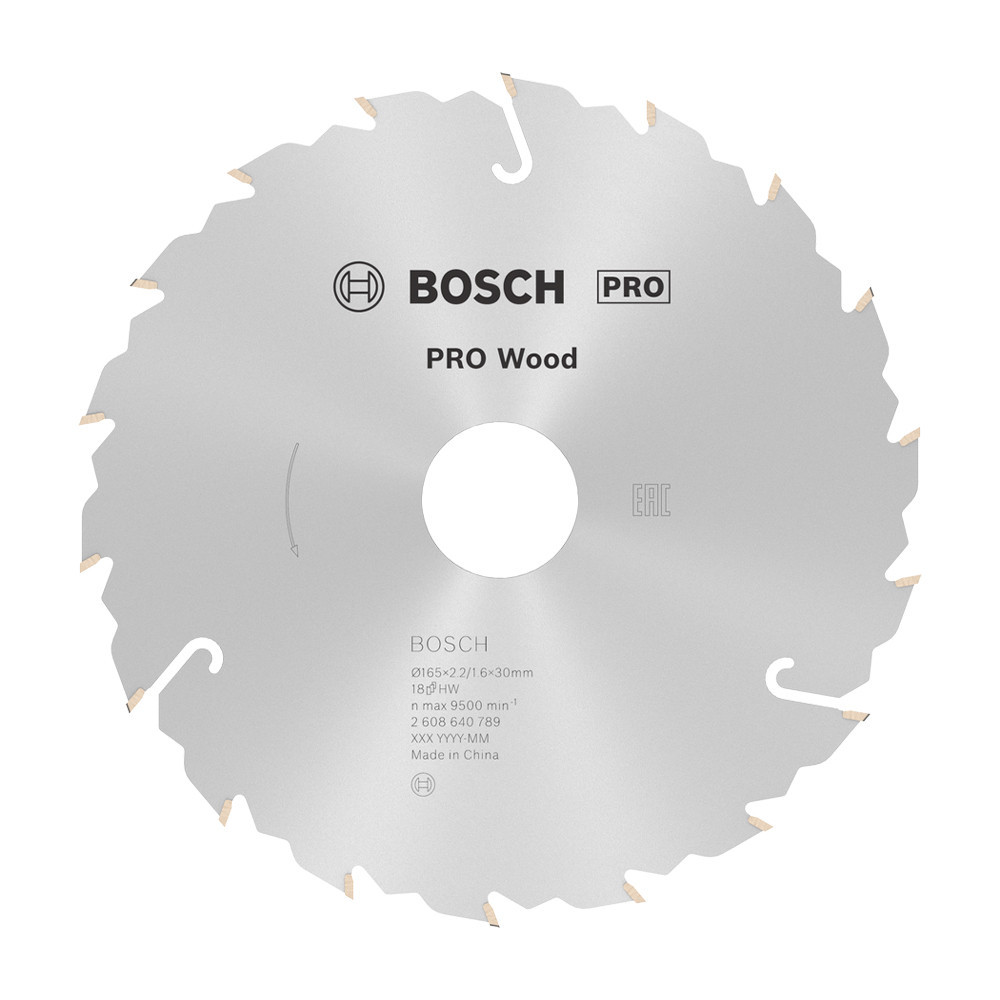 Bosch PRO Wood körfűrészlap, 165x2,2x30 mm 18 fog, kemény fa, rétegelt lemez, forgácslap