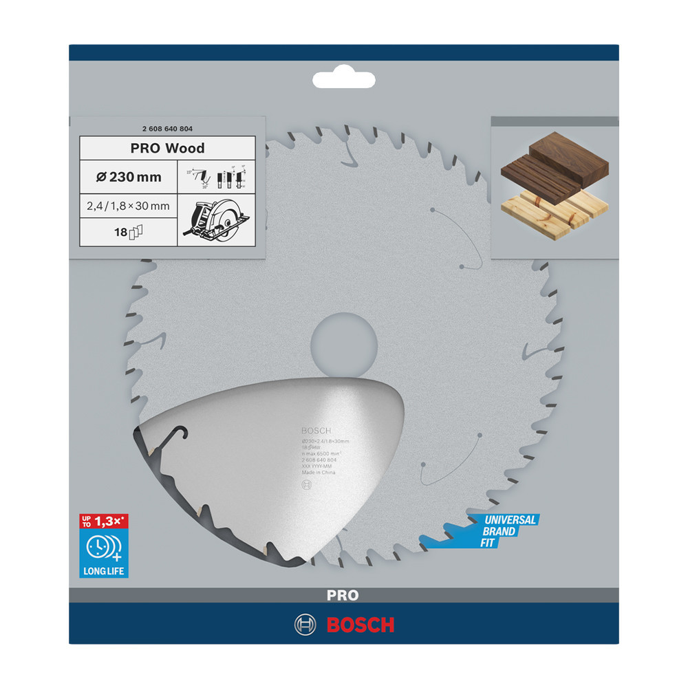 Bosch PRO Wood körfűrészlap, 230x2,4x30 mm 18 fog, kemény fa, rétegelt lemez, forgácslap
