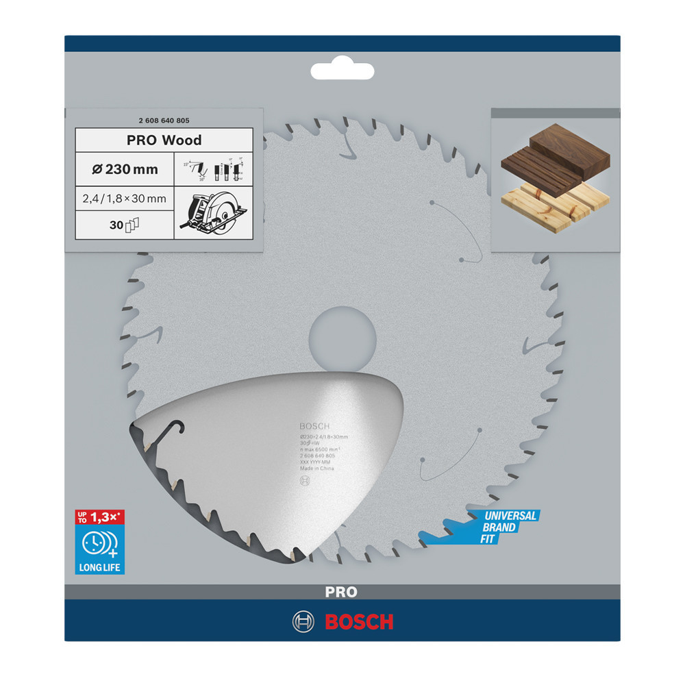 Bosch PRO Wood körfűrészlap, 230x2,4x30 mm 30 fog, kemény fa, rétegelt lemez, forgácslap