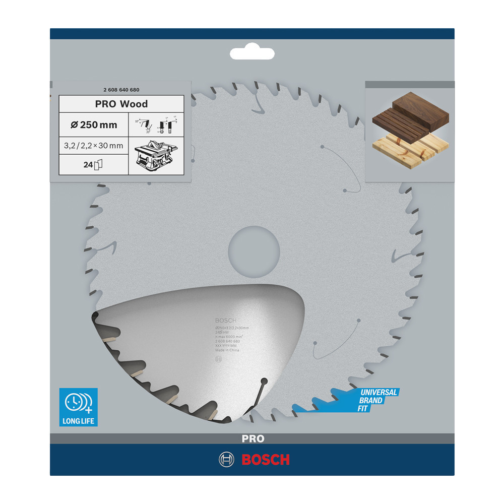 Bosch PRO Wood körfűrészlap, 250x3,2x30 mm 24 fog, kemény fa, rétegelt lemez, forgácslap