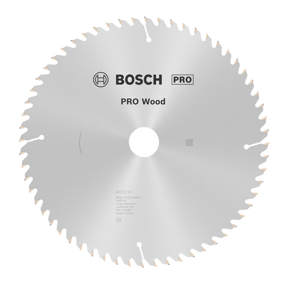 Bosch PRO Wood körfűrészlap, 250x3,2x30 mm 60 fog, kemény fa, rétegelt lemez, forgácslap