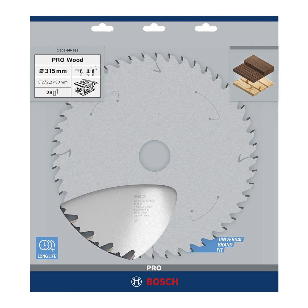 Bosch PRO Wood körfűrészlap, 315x3,2x30 mm 28 fog, kemény fa, rétegelt lemez, forgácslap