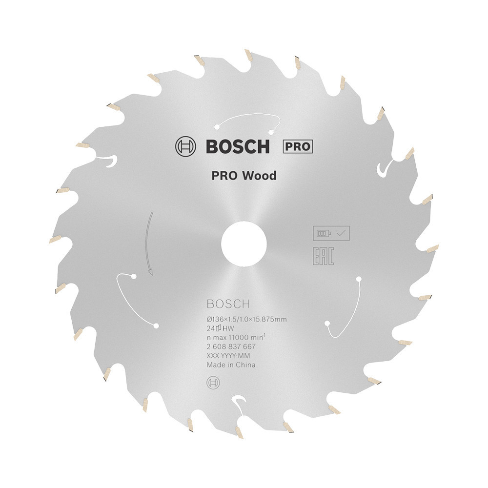 Bosch PRO Wood körfűrészlap akkus géphez, 136x1,5x15,875 mm 24 fog, kemény fa, forgácslap