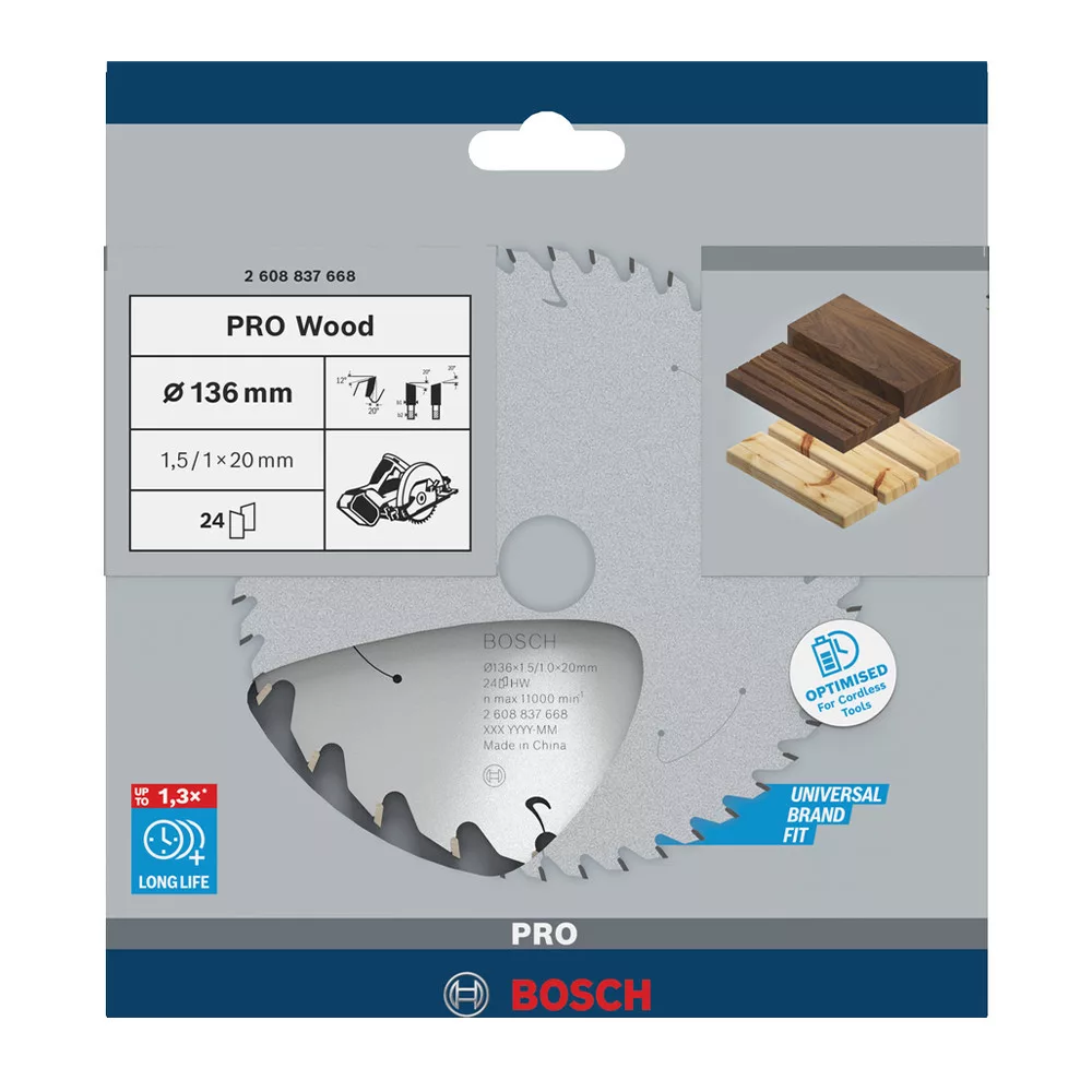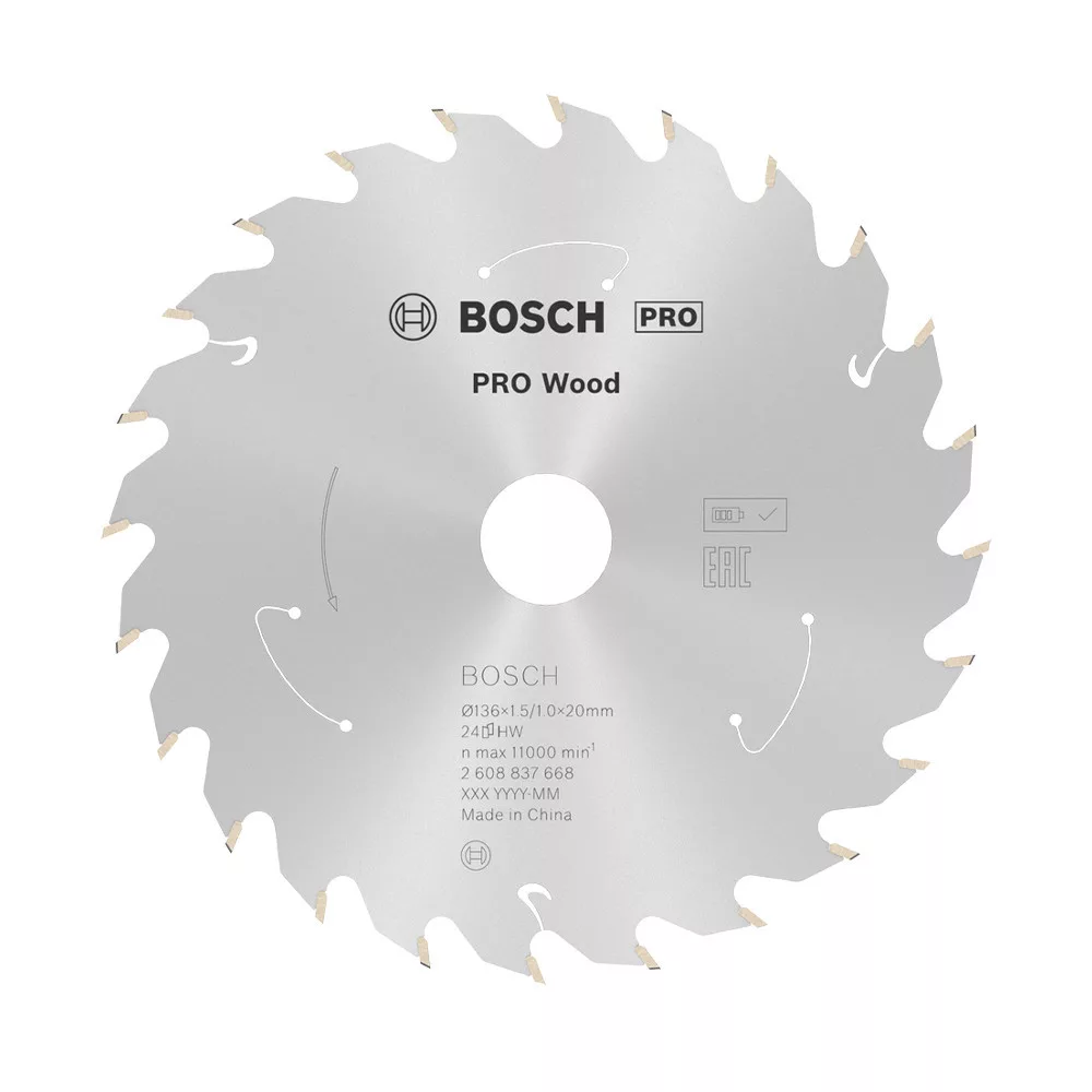 Bosch PRO Wood körfűrészlap akkus géphez, 136x1,5x20 mm 24 fog, kemény fa, forgácslap