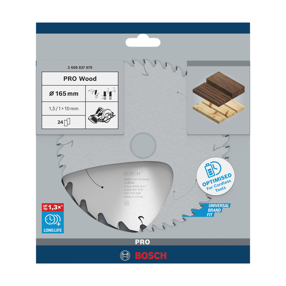 Bosch PRO Wood körfűrészlap akkus géphez, 165x1,5x10 mm 24 fog, kemény fa, forgácslap