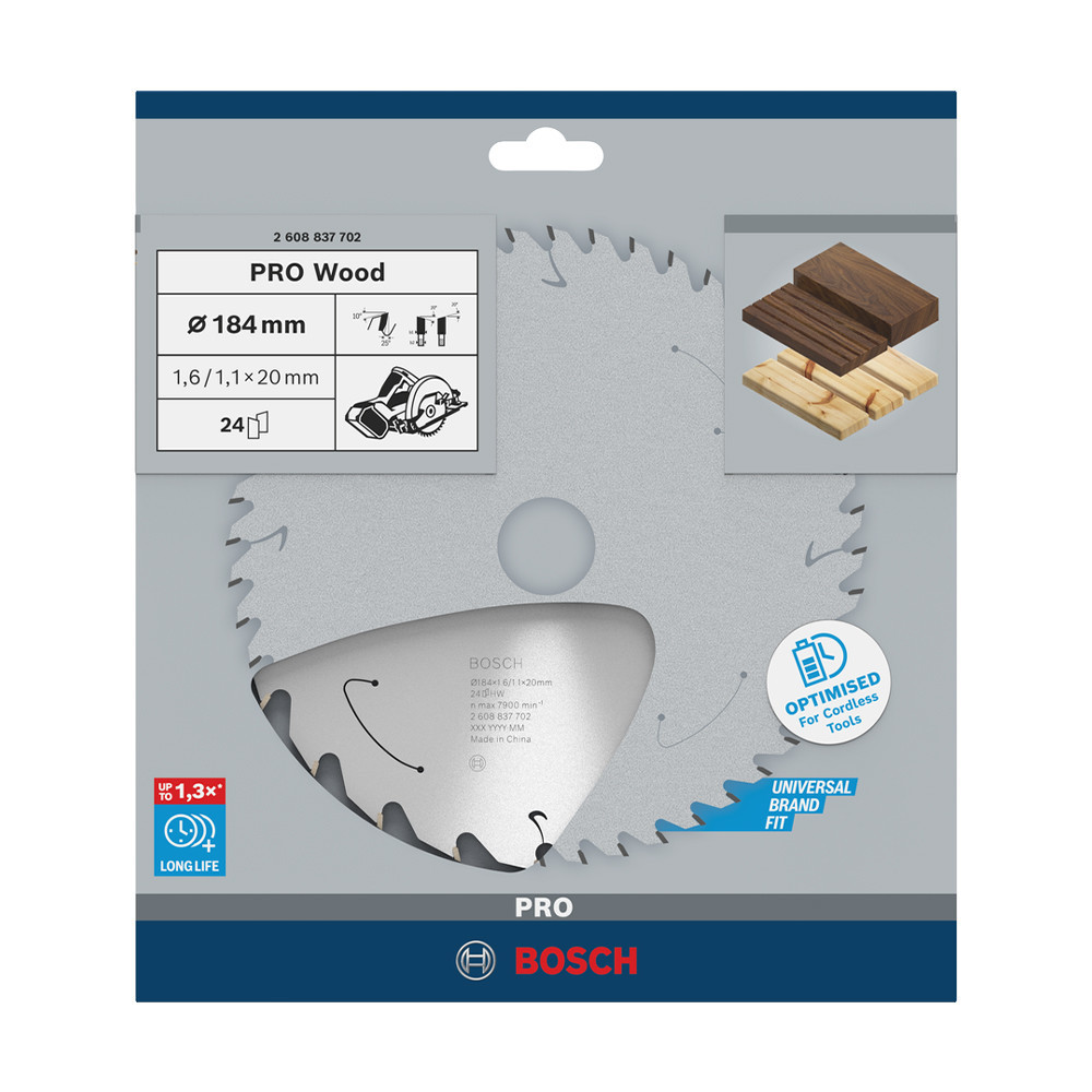 Bosch PRO Wood körfűrészlap akkus géphez, 184x1,6x20 mm 24 fog, kemény fa, forgácslap