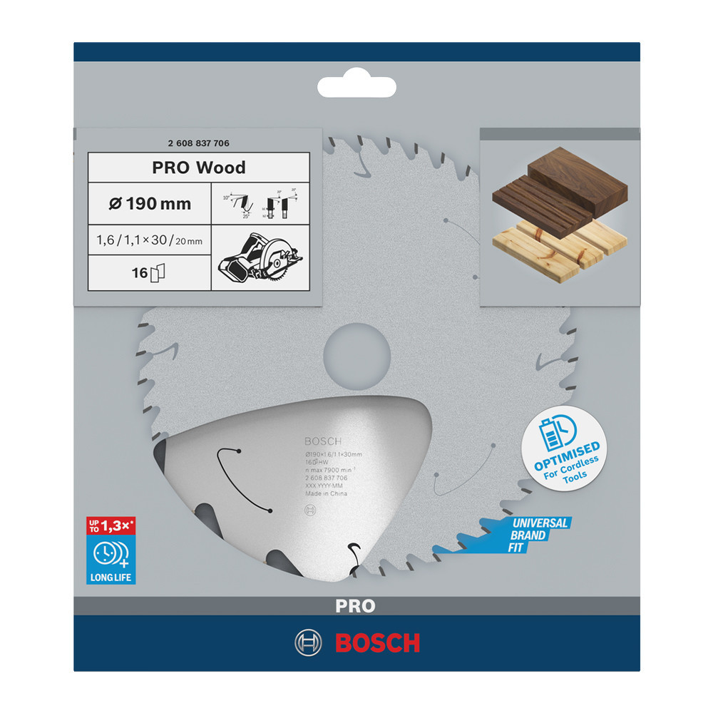 Bosch PRO Wood körfűrészlap akkus géphez, 190x1,6x30 mm 16 fog, kemény fa, forgácslap