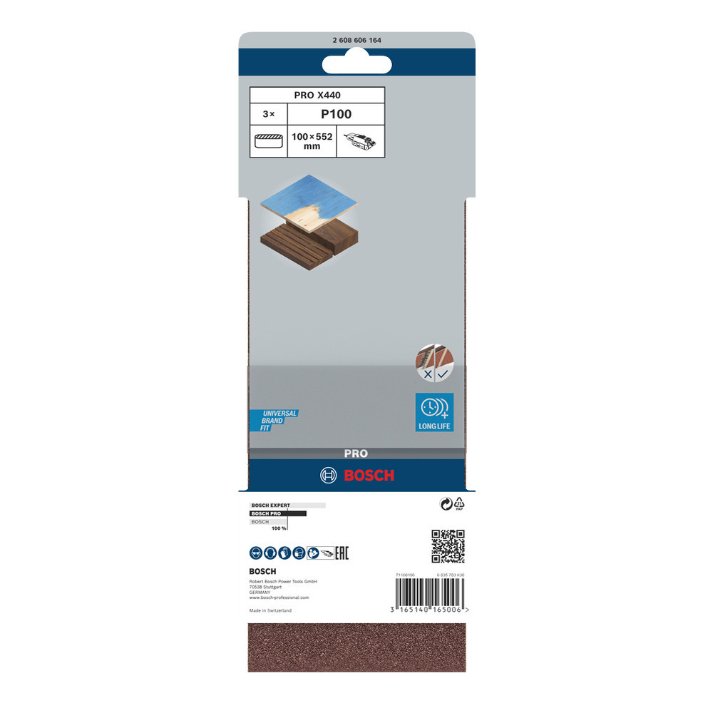 Bosch PRO X440 csiszolószalag, 100x552 mm, G100 3 db, keményfa, tömörfa, festék