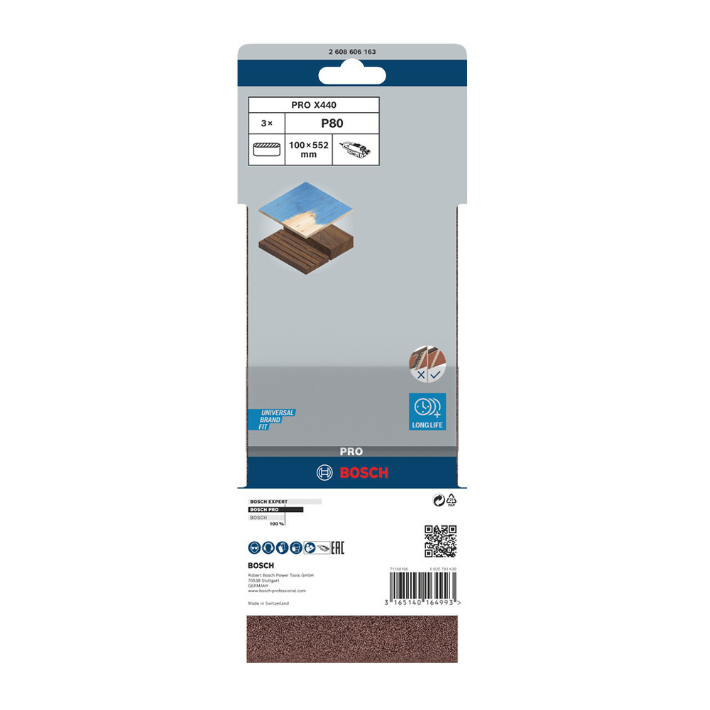 Bosch PRO X440 csiszolószalag, 100x552 mm, G80 3 db, keményfa, tömörfa, festék