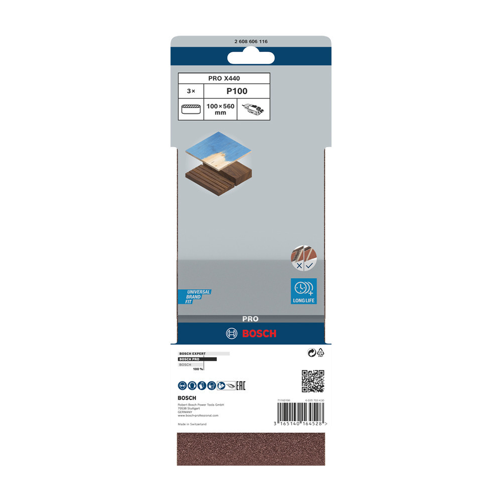 Bosch PRO X440 csiszolószalag, 100x560 mm, G100 3 db, keményfa, tömörfa, festék