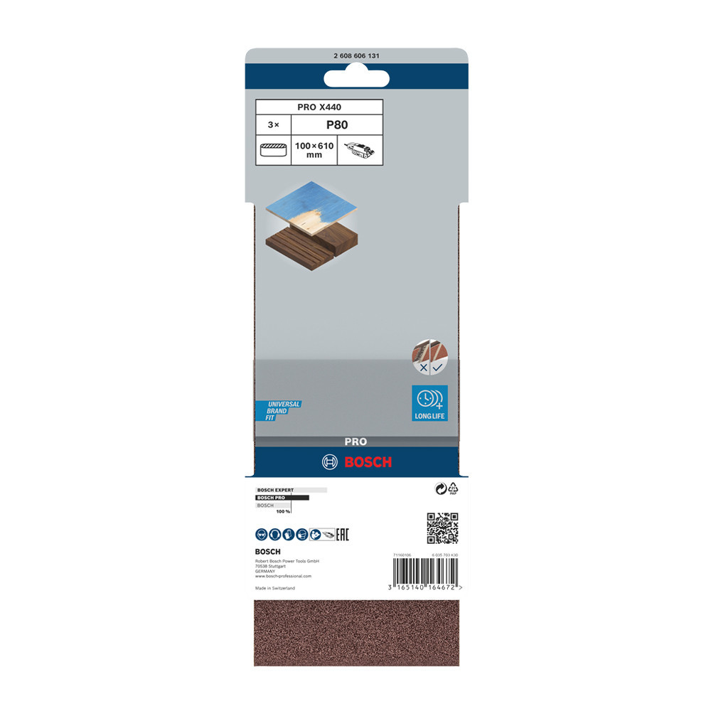 Bosch PRO X440 csiszolószalag, 100x610 mm, G80 3 db, keményfa, tömörfa, festék