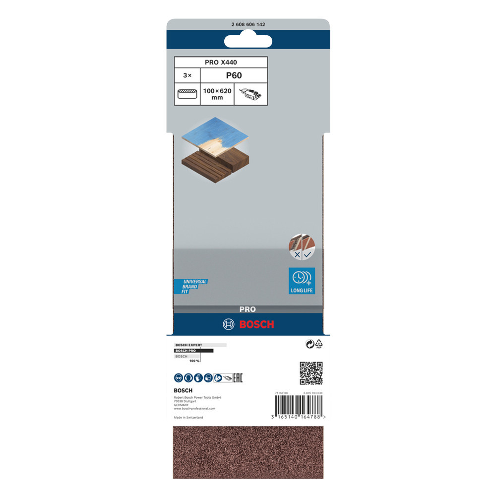 Bosch PRO X440 csiszolószalag, 100x620 mm, G60 3 db, keményfa, tömörfa, festék