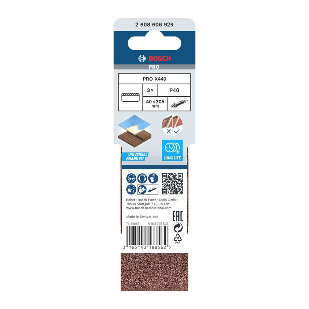 Bosch PRO X440 csiszolószalag, 40x305 mm, G40, fa, festék 3 db