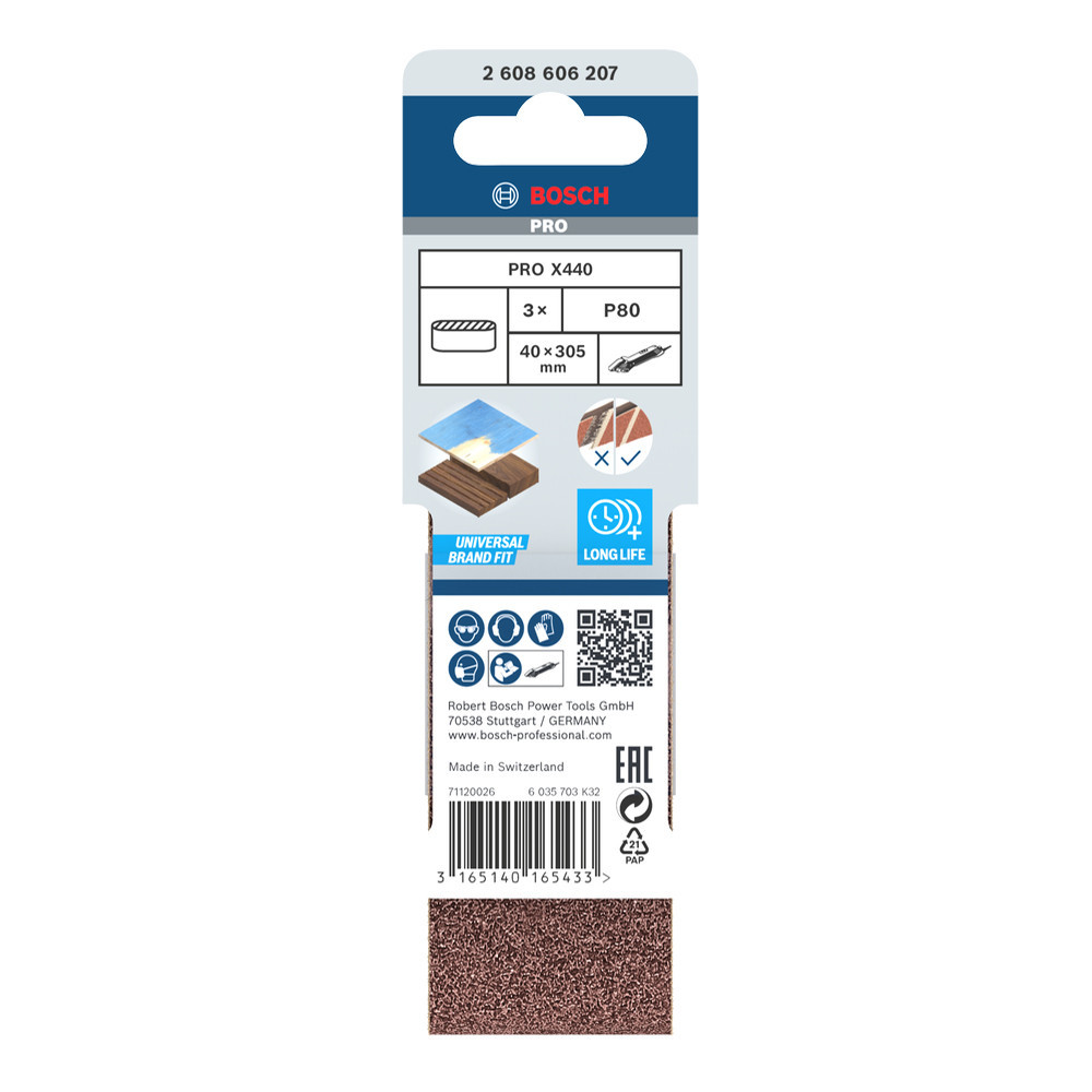 Bosch PRO X440 csiszolószalag, 40x305 mm, G80 3 db, keményfa, tömörfa, festék