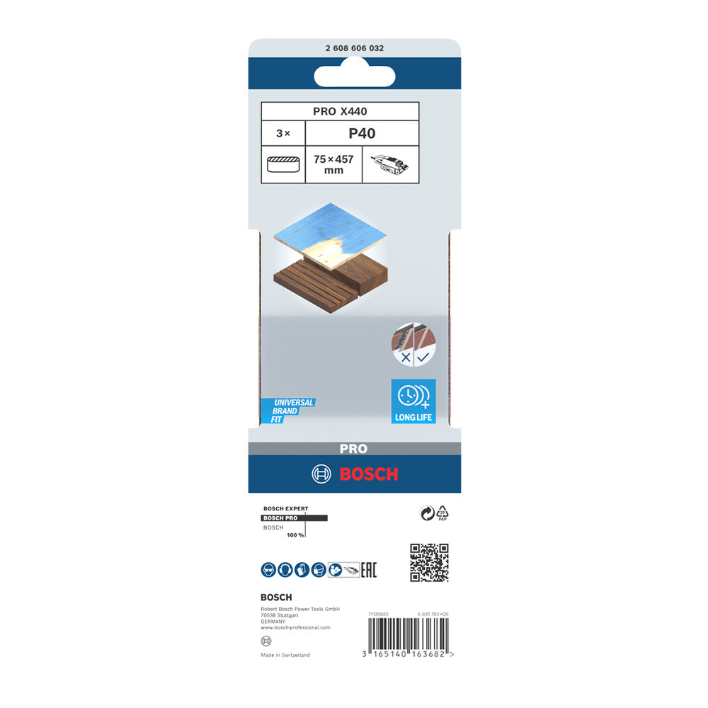 Bosch PRO X440 csiszolószalag, 75x457 mm, G40 3 db, keményfa, tömörfa, festék