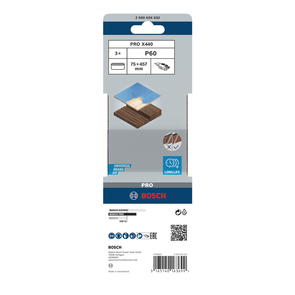 Bosch PRO X440 csiszolószalag, 75x457 mm, G60 3 db, keményfa, tömörfa, festék