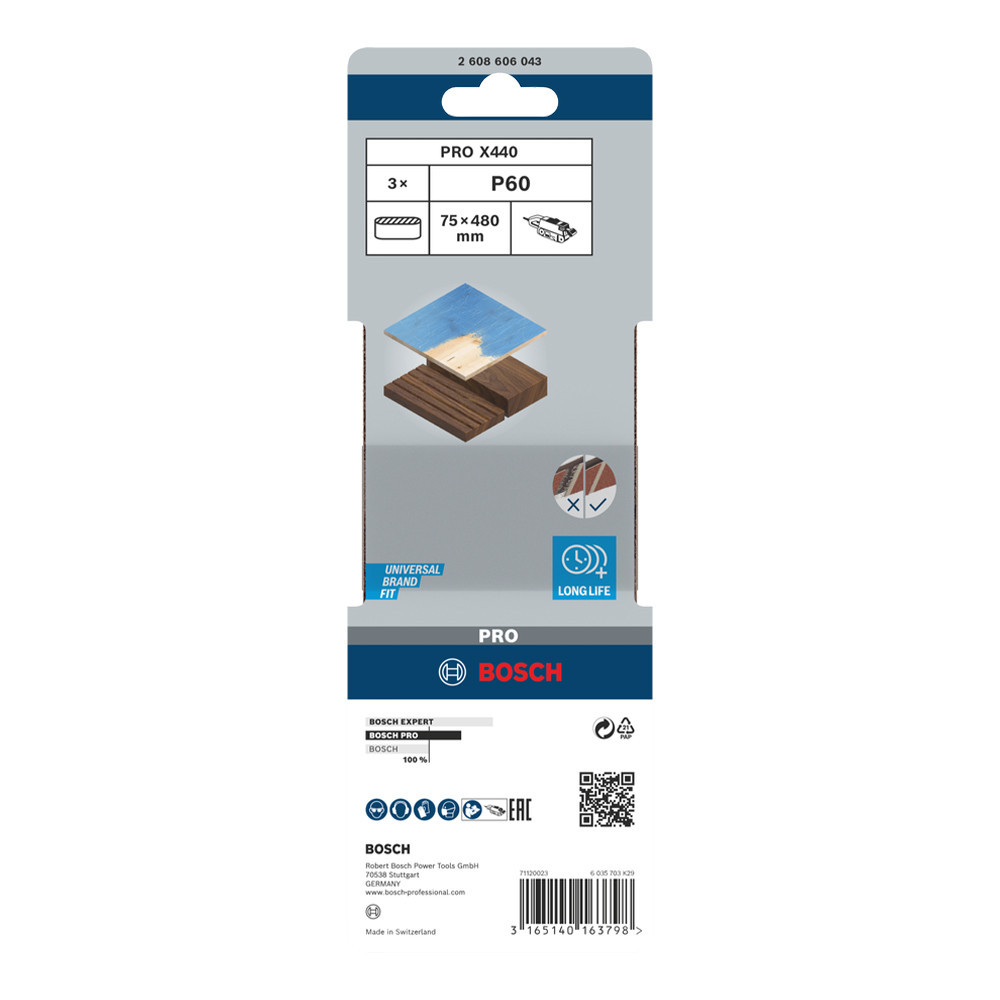 Bosch PRO X440 csiszolószalag, 75x480 mm, G60 3 db, keményfa, tömörfa, festék