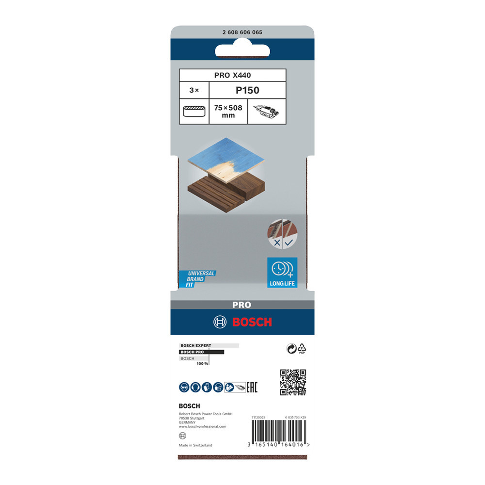Bosch PRO X440 csiszolószalag, 75x508 mm, G150 3 db, keményfa, tömörfa, festék