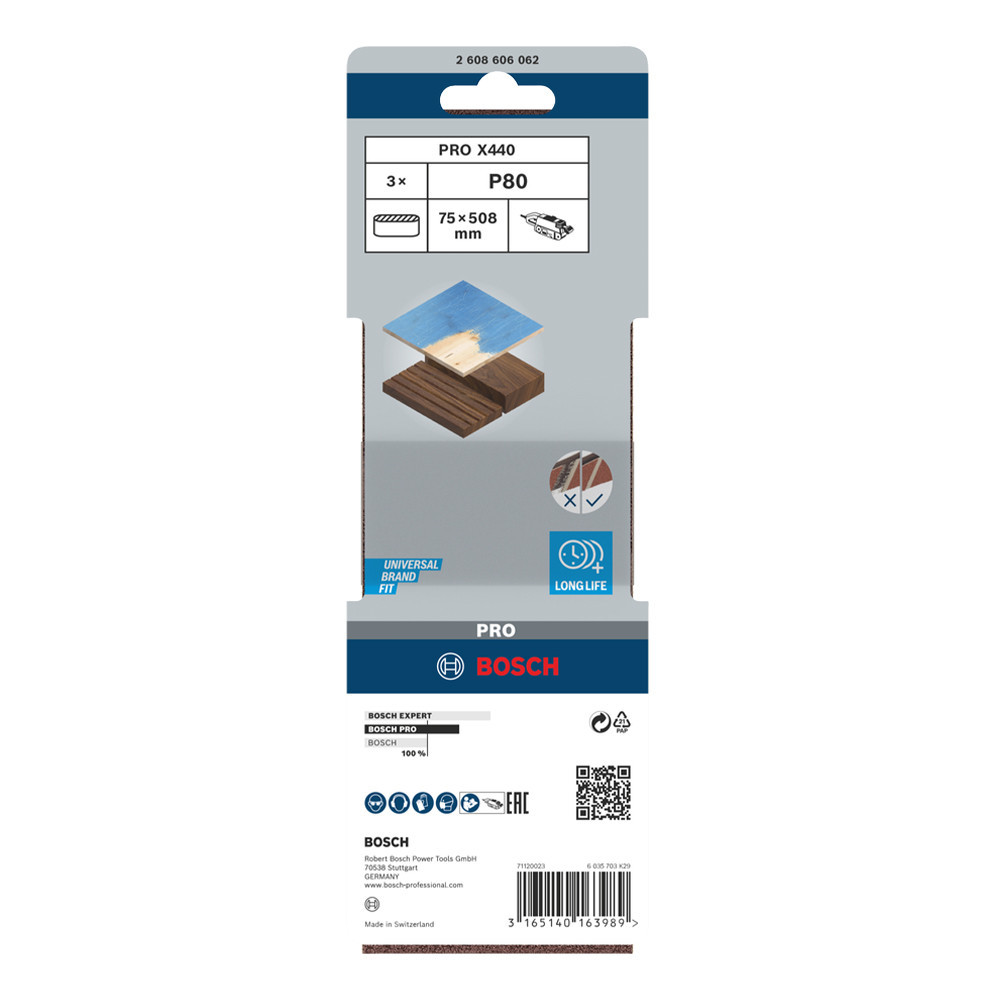 Bosch PRO X440 csiszolószalag, 75x508 mm, G80 3 db, keményfa, tömörfa, festék