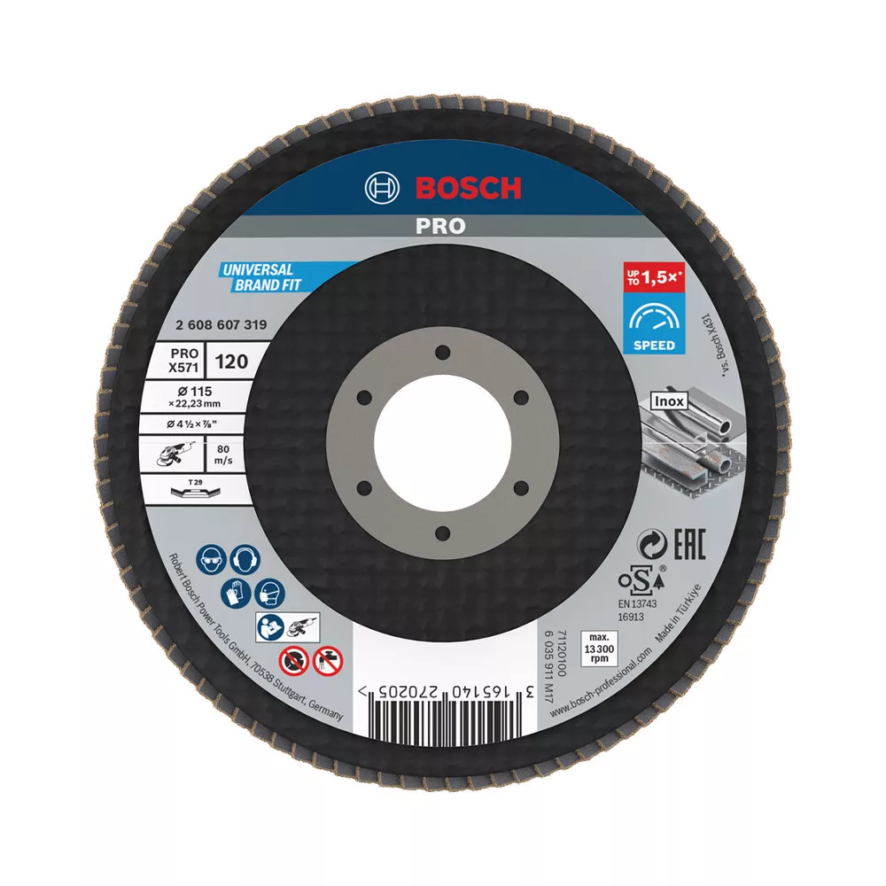 Bosch PRO X571 legyezőtárcsa, 115 mm, G120, inoxhoz, fémhez