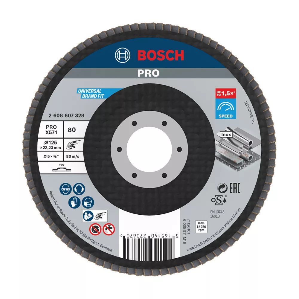 Bosch PRO X571 legyezőtárcsa, 125 mm, G80, inoxhoz, fémhez