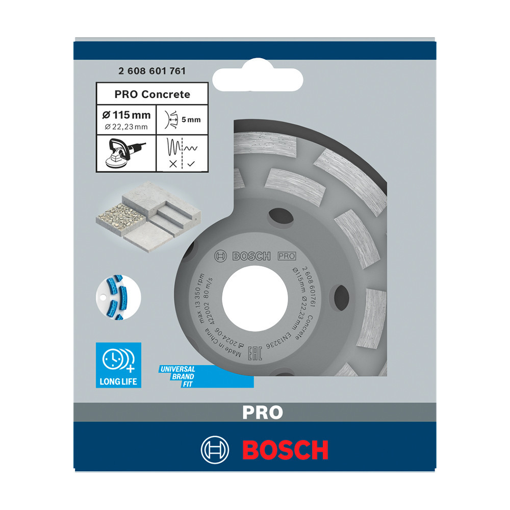 Bosch PRO gyémánt fazékkorong, 115 mm, sarokcsiszolóhoz, betonhoz, hosszú élettartam