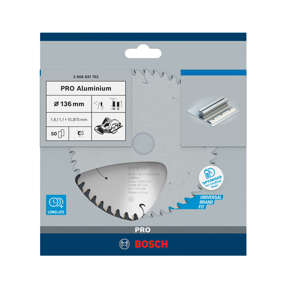 Bosch PRO körfűrészlap akkus géphez, 136x1,6x15,875 mm 50 fog, alumínium, nemvasfém