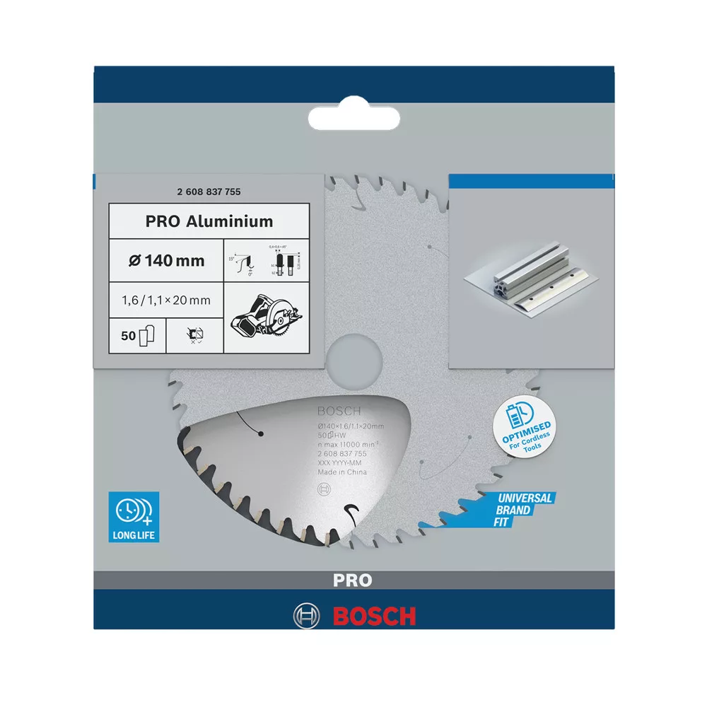 Bosch PRO körfűrészlap akkus géphez, 140x1,6x20 mm 50 fog, alumínium, nemvasfém