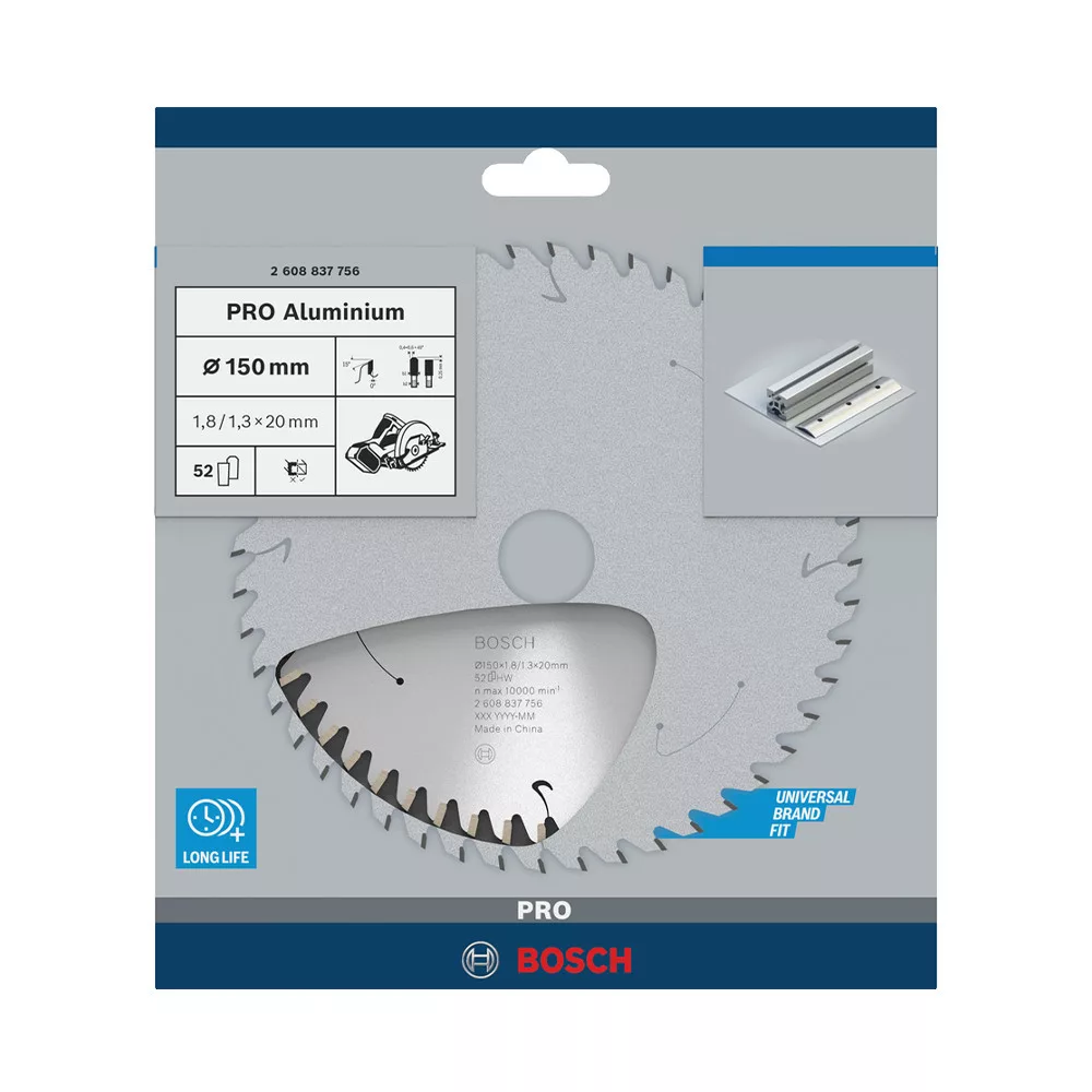Bosch PRO körfűrészlap akkus géphez, 150x1,8x20 mm 52 fog, alumínium, nemvasfém