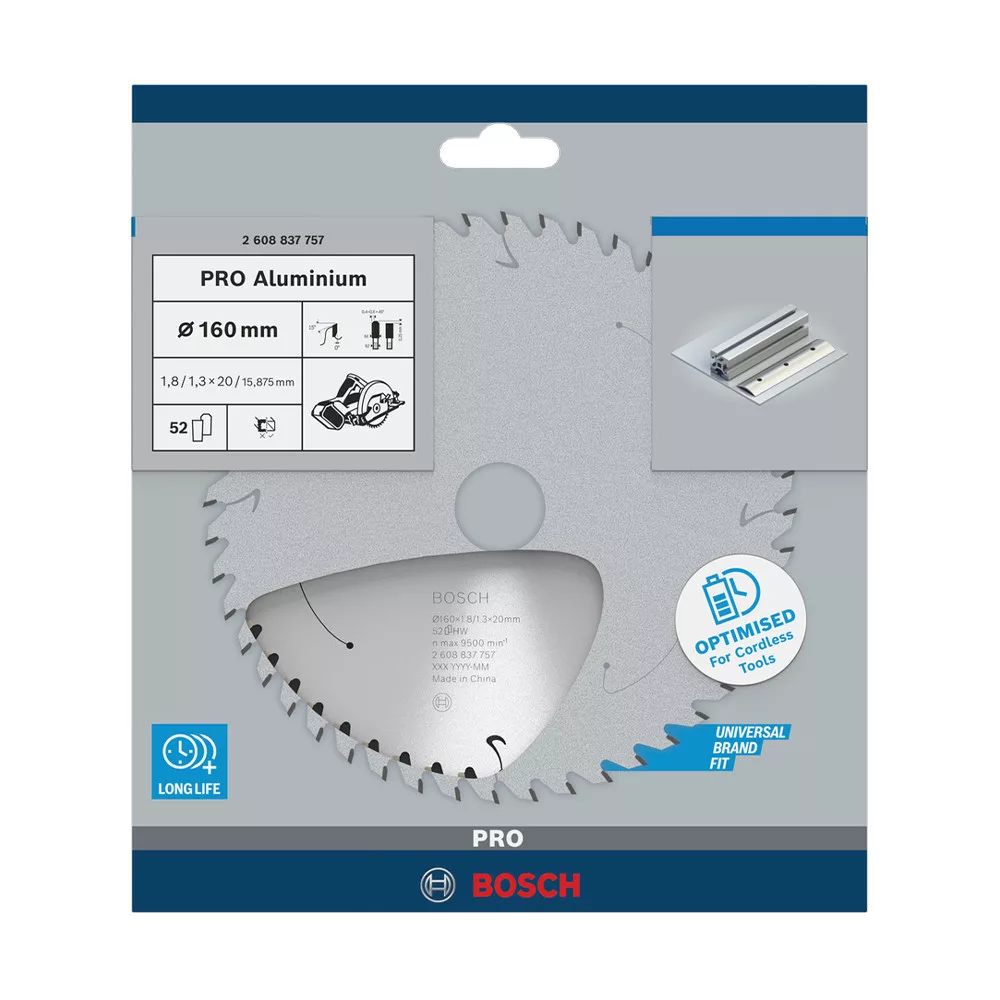 Bosch PRO körfűrészlap akkus géphez, 160x1,8x20 mm 52 fog, alumínium, nemvasfém