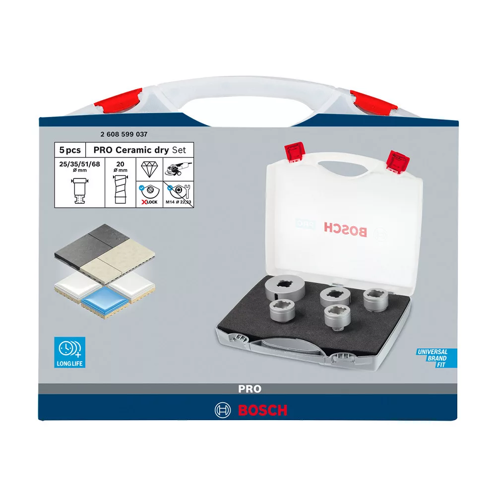 Bosch PRO száraz gyémánt fúrókorona készlet, X-LOCK, 20, 25, 35, 51, 68 mm 5 részes