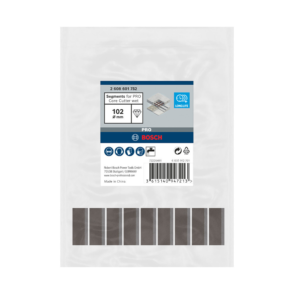 Bosch PRO szegmens gyémánt fúrókoronához, 102x10mm, befogás 1 1/4" 9db
