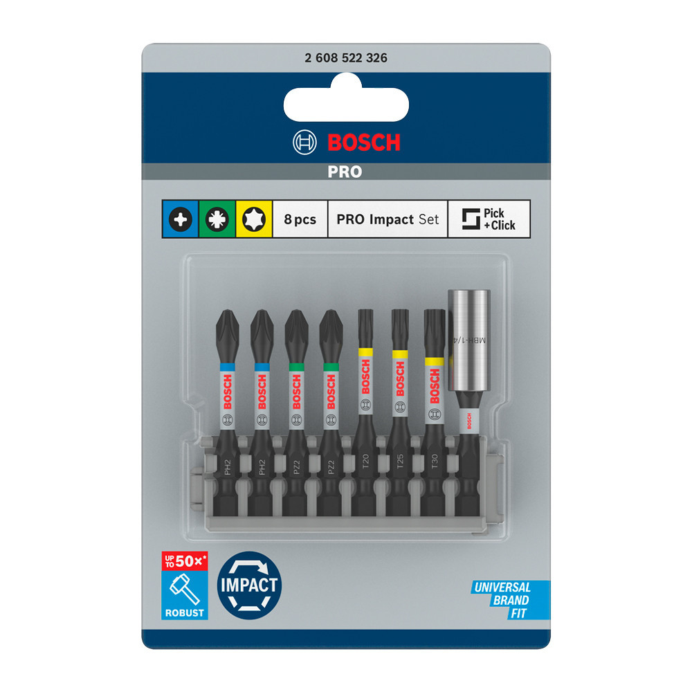 Bosch PRO ütvecsavarozó bitkészlet, 50 mm, 8 részes, vegyes, Pick and Click