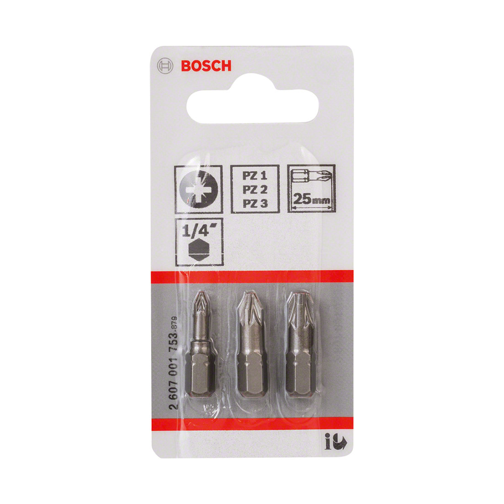 3 részes Bosch Pozidriv extra kemény bitfej PZ1, PZ2, PZ3 x 25 mm