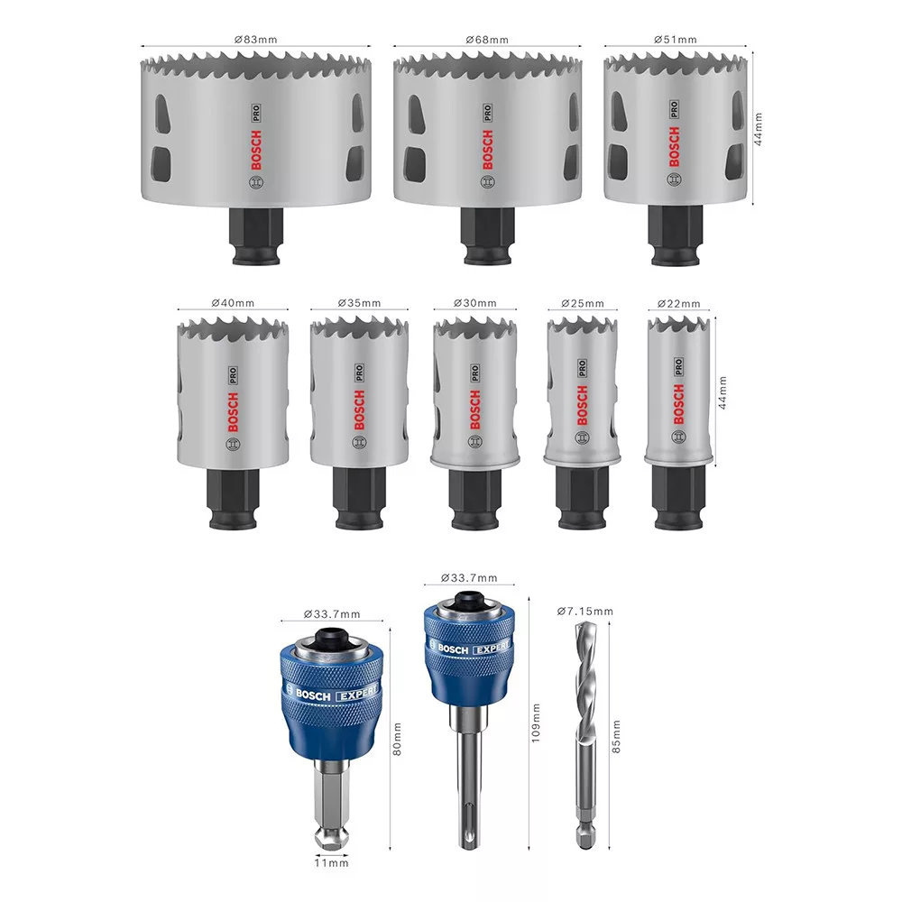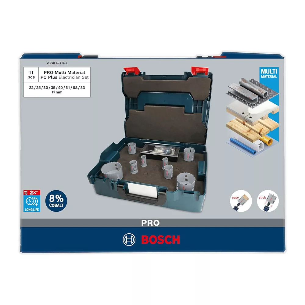 Bosch PRO Multi Material PC Plus körkivágó készlet befogóval, 11 részes, 22,25,30,35,40,51,68,83