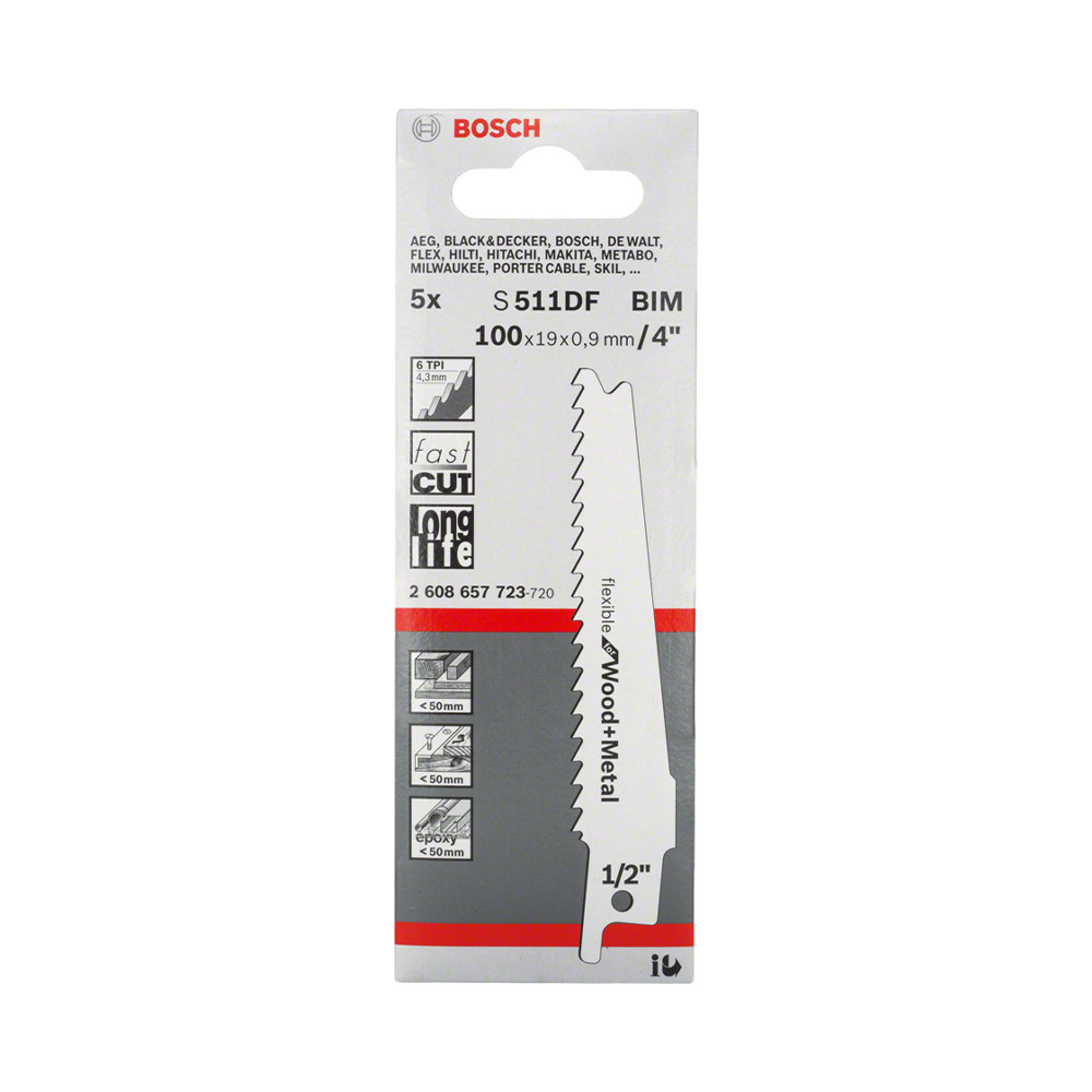 5 db Bosch S 511 DF Flexible for Wood and Metal szablyafűrészlap