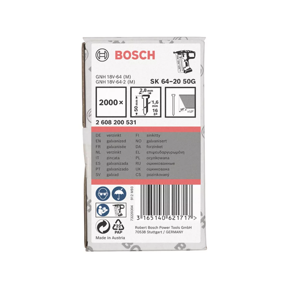 1 db Bosch Süllyesztettfejű szeg SK64-20 50G, 2000 db