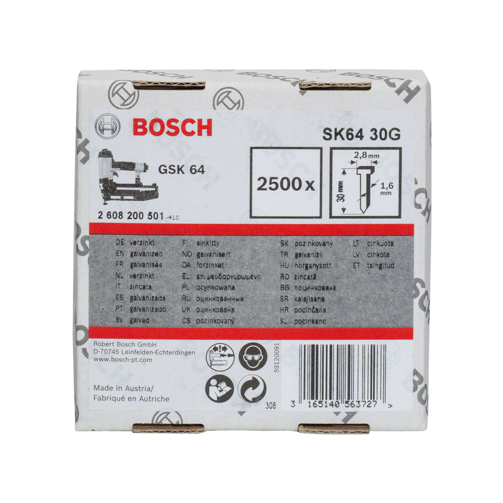 1 db Bosch Süllyesztettfejű szeg SK64 30G, 2500 db