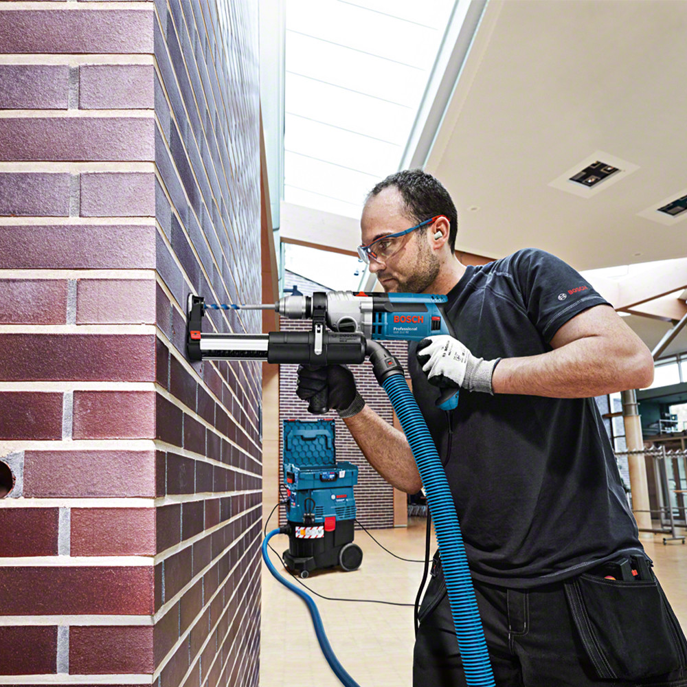 Egyszerűen kezelhető: egy kattintással csatlakoztatható egy ütvefúrógéphez és egy porszívóhoz