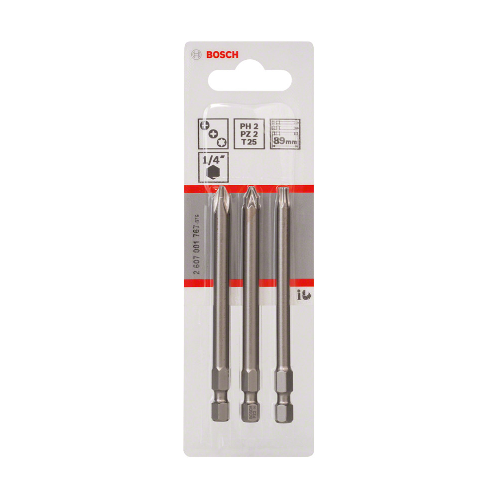3 részes Bosch extra kemény bitfej PH2, PZ2, T25 x 89 mm