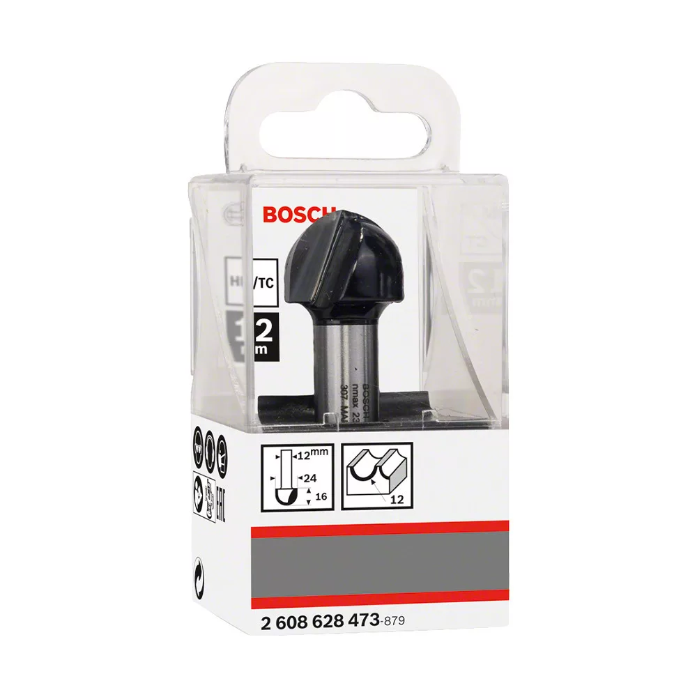 Bosch keményfém homorulatmaró szár: 12 mm D:24 L:15,9 G:57 (2 vágóél) R1:12 keményfához