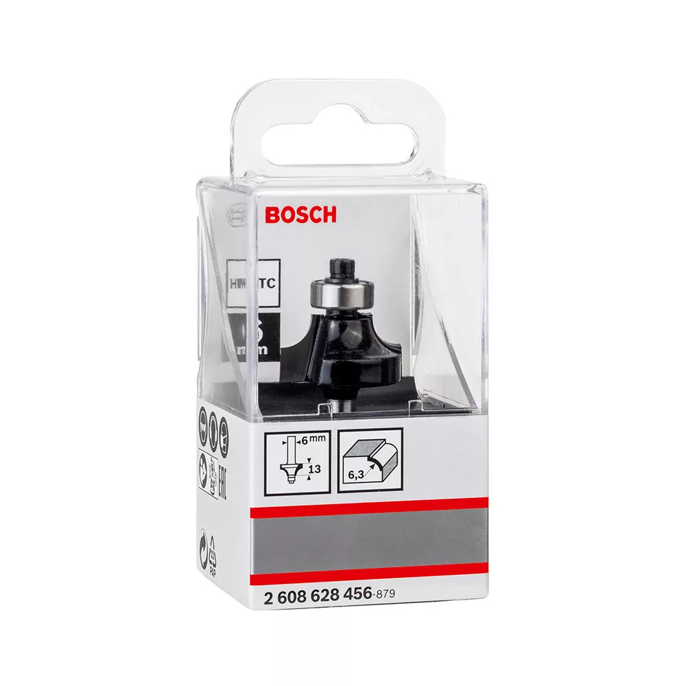 Bosch keményfém lekerekítő maró szár: 6 mm D:25,4 L:13,2 G:54 R1:6,3 csapágyas keményfához