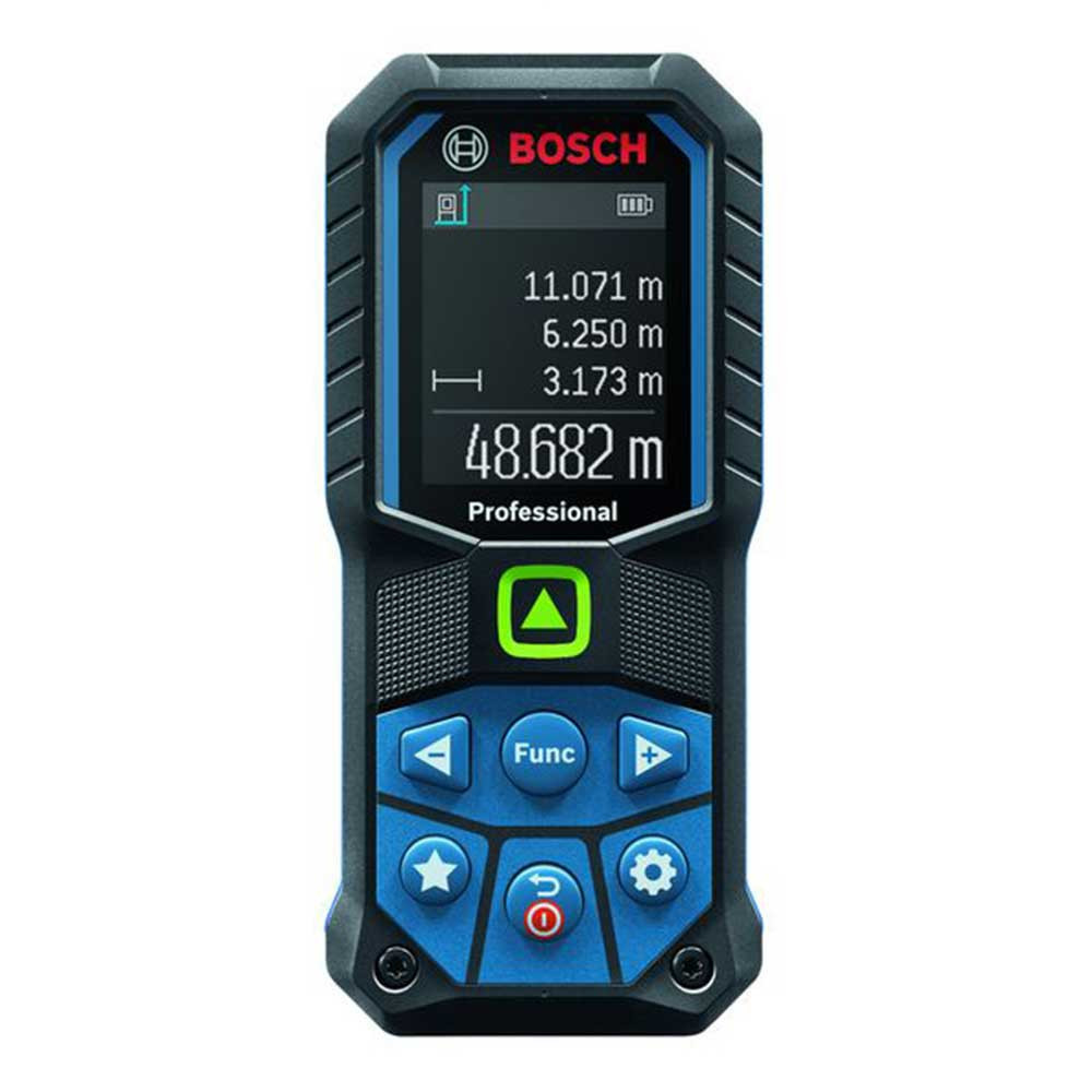 A GLM 50-25 G Professional a zöld lézerpont kiváló láthatósággal rendelkezik, így könnyebb a célzás nagyobb beltéri távolságok esetén Az IP65 kialakítással teljesen védett a por és vízsugár ellen, az ütést elnyelő tok pedig akár 1,5 m-es magasságból a kemény betonra történő leejtésnek is ellenáll Személyre szabható gombbal rendelkezik a gyakori mérési funkciók és beállítások meghatározásához, és a mérések visszaigazolásához rezgés visszajelzéssel Intuitív felhasználói kezelőfelületén 30 nyelv választható ki, a jobb olvashatóságot a színes kijelző és a nagy számokat megjelenítő üzemmód biztosítja Ideális a szerelés elemeinek elhelyezéséhez és felszereléséhez fa, általános és szárazépítészeti szerkezetekre, villanyszerelők, légtechnikai és vízvezeték-szerelők számára A festők, melegburkolók, hidegburkolók és épületasztalosok számára is tökéletes az anyagszükséglet kiszámításához