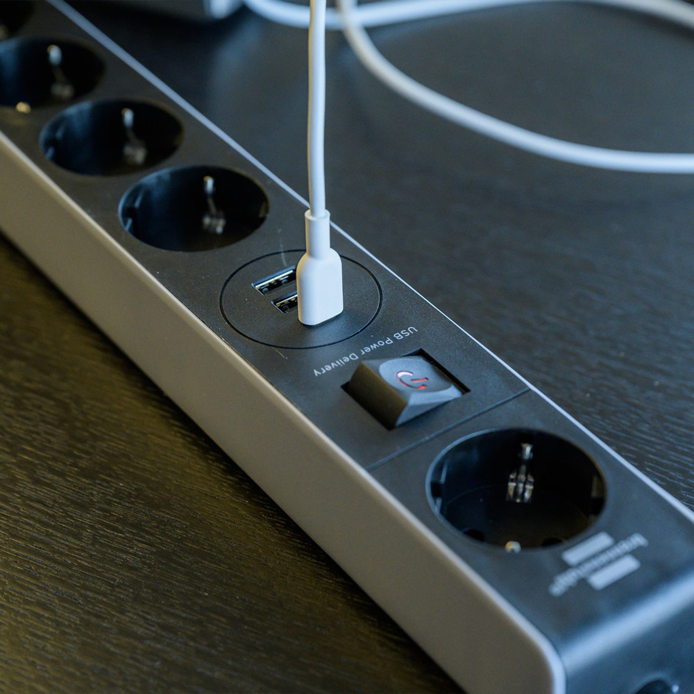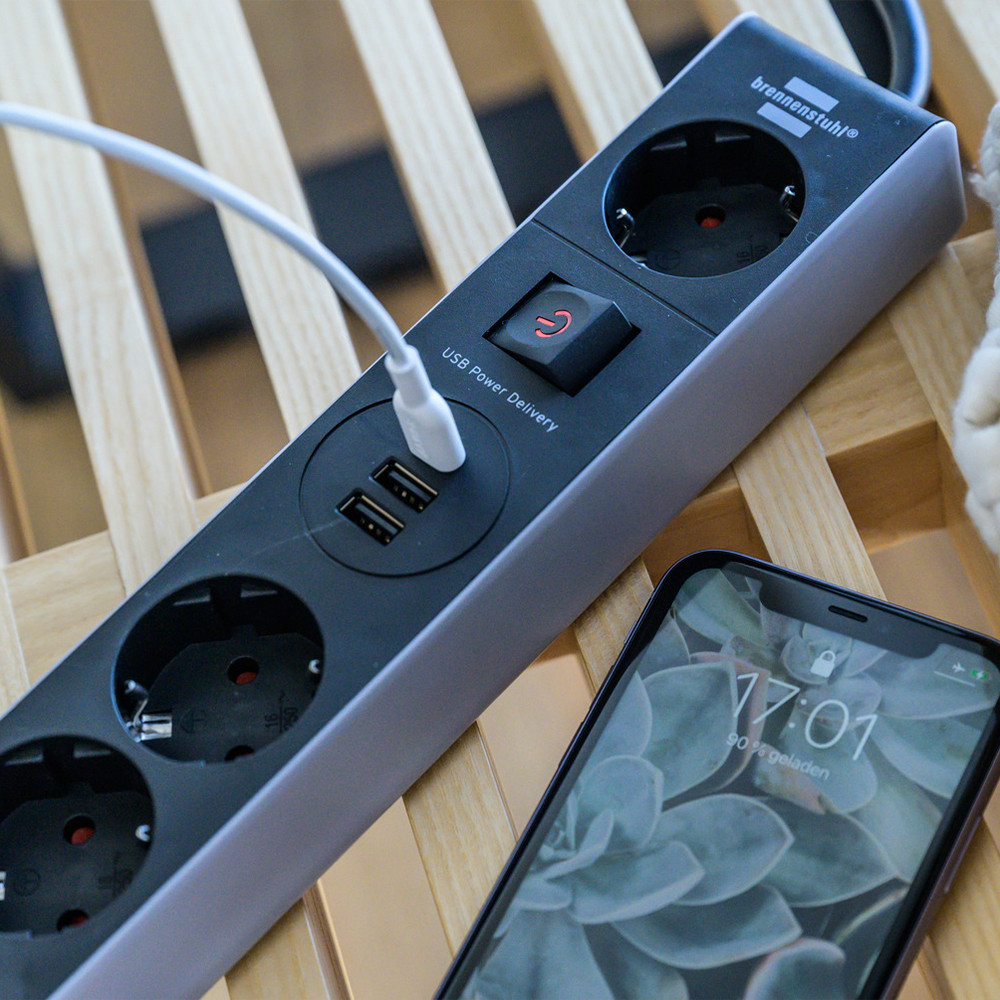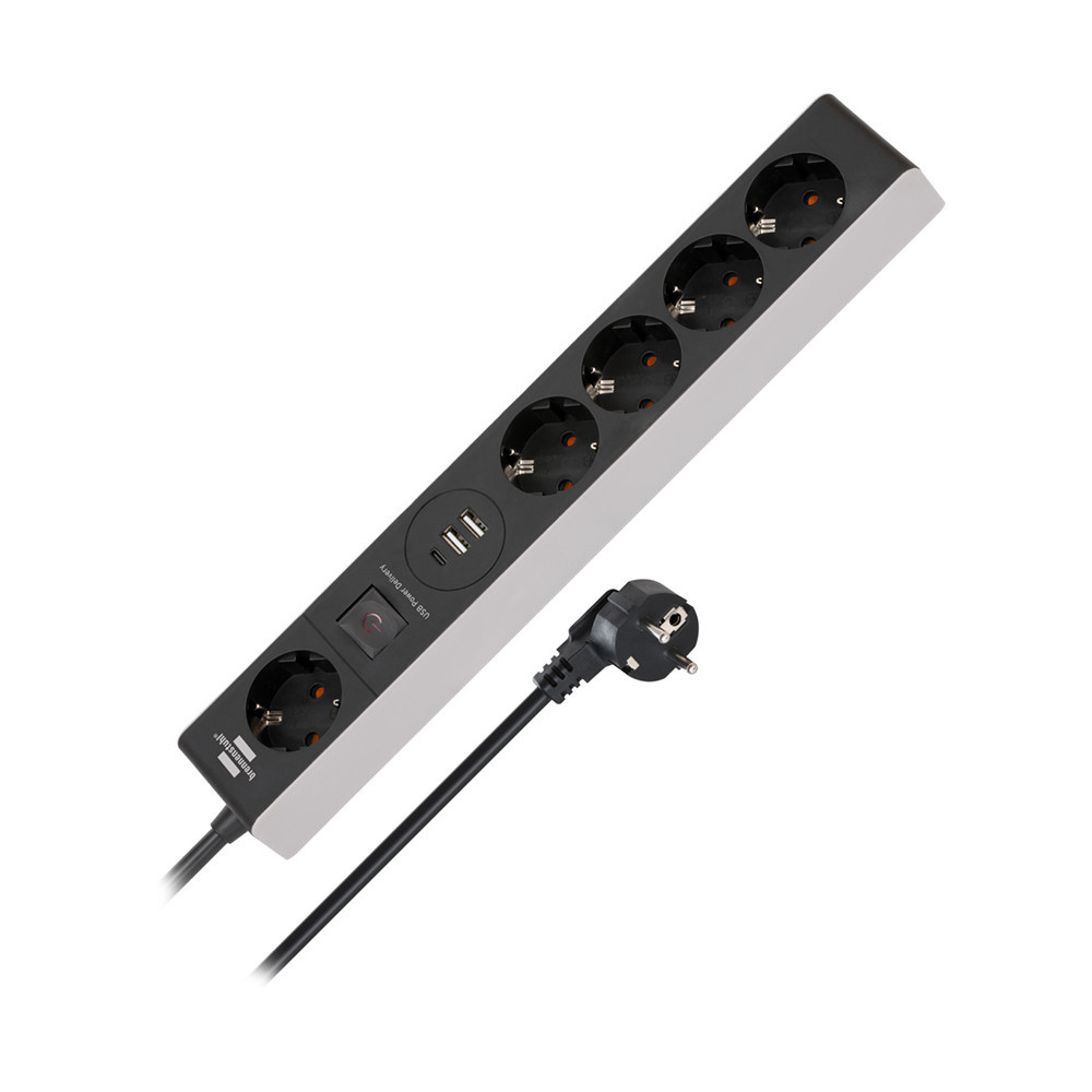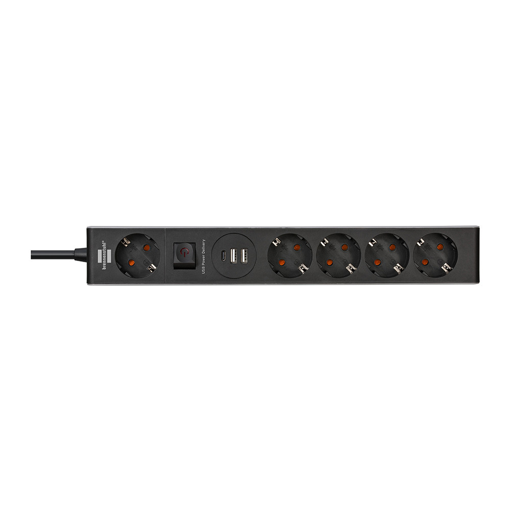 Brennenstuhl 5-szeres Power Delivery elosztó 5 dugalj, 2 USB és 1 C csat., fekete/szürke, 1,5m
